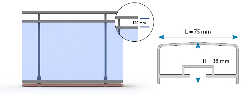 Die Abmessungen des Geländers und das erforderliche Gewicht des Belages (Holz- oder WPC-Dielen) werden von dani alu entsprechend den Bestimmungsländern und den geltenden Vorschriften ausgewiesen.