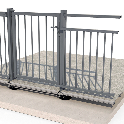 Panorama® Terrassen-Kit ist ein auflastgehaltenes Geländersystem für privat genutzte Terrassen mit Platten, Fliesen oder Dielen auf Stelzlagern.
