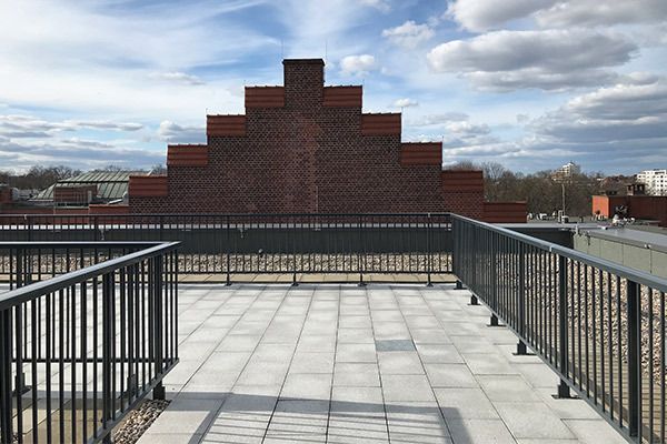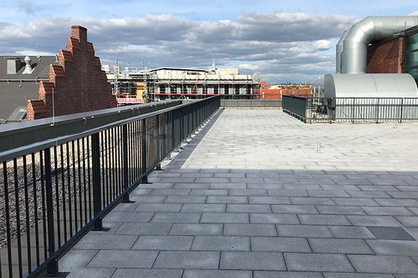 Flachdachterrasse mit durchdringungsfreiem Geländersystem